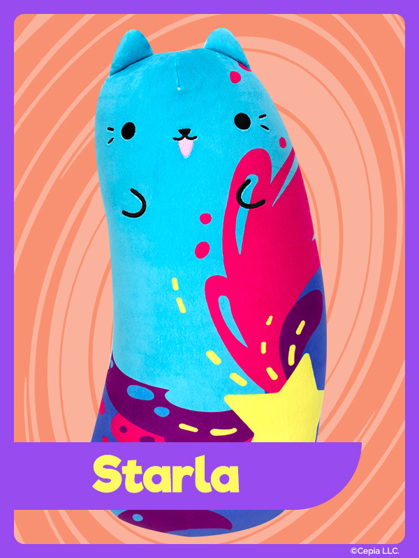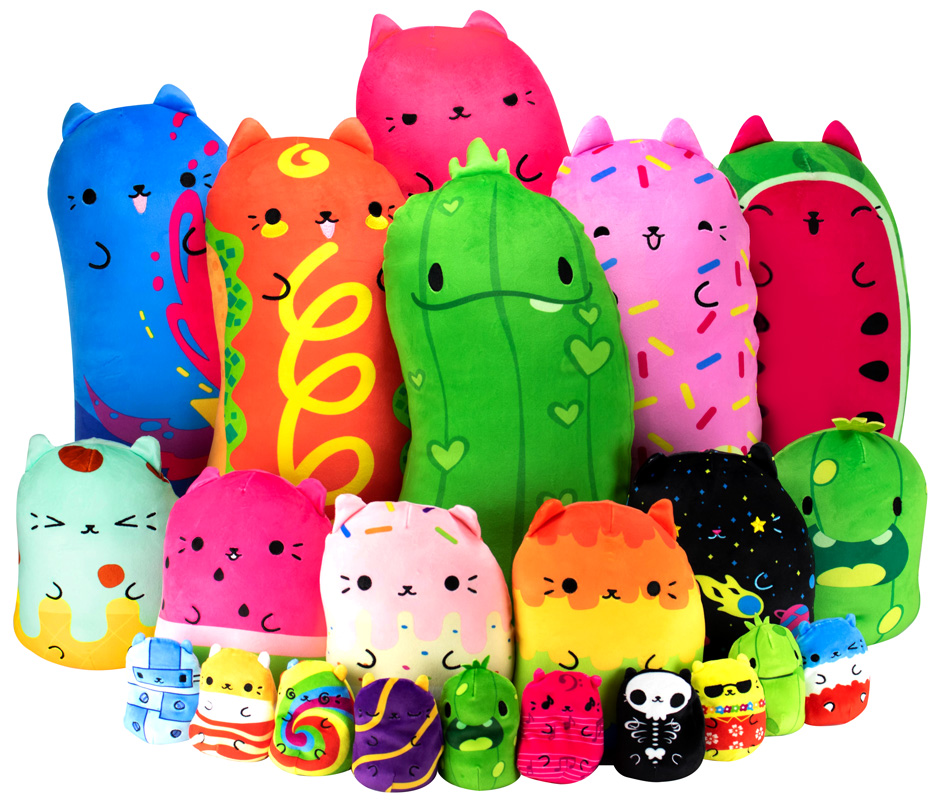 New Cats Vs Pickles “Huggers” are colorful, silly, super-soft, huggable, plush characters. They’re about 16.5 inches tall and 8 inches wide - the perfect size to snuggle with!