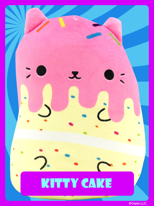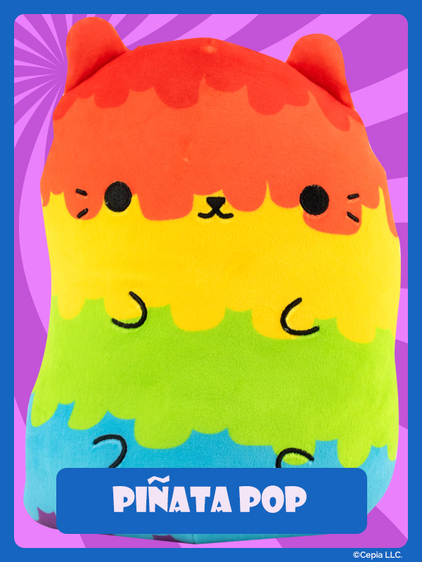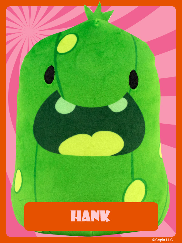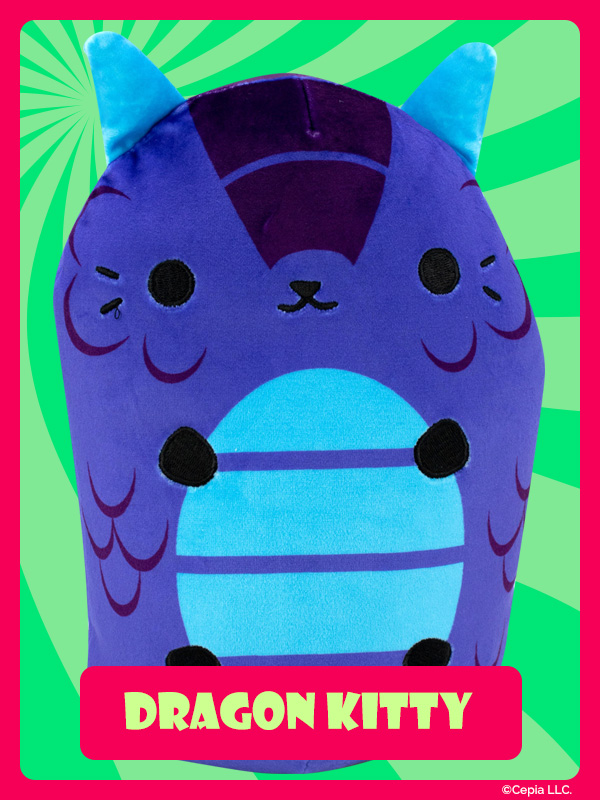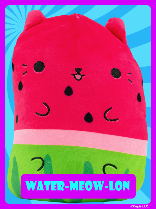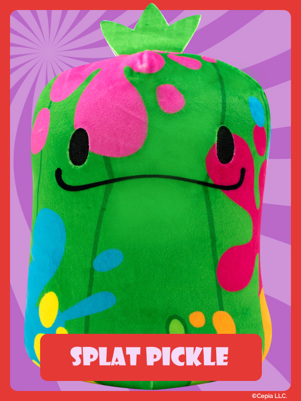 New Cats Vs Pickles “Jumbos” are super-soft, colorful, bean-filled plushies and are winners of the Toy Insider "12 Under $20" award! They’re about 8.6 inches tall, 7 inches wide, and have a weighted bottom. They’re so soft and feel so great to hold, you’ll never want to put them down!