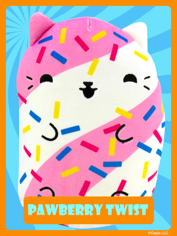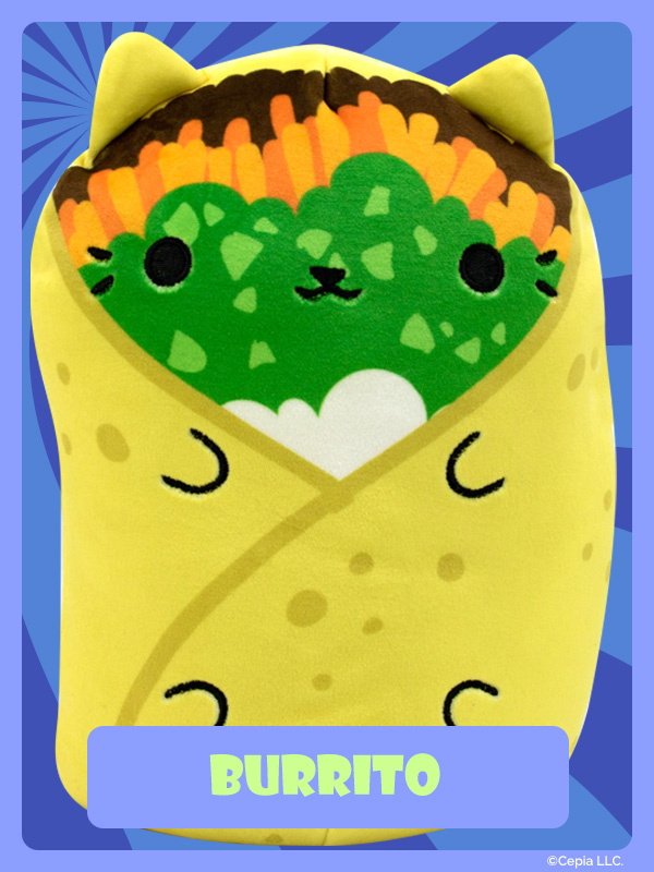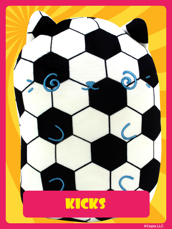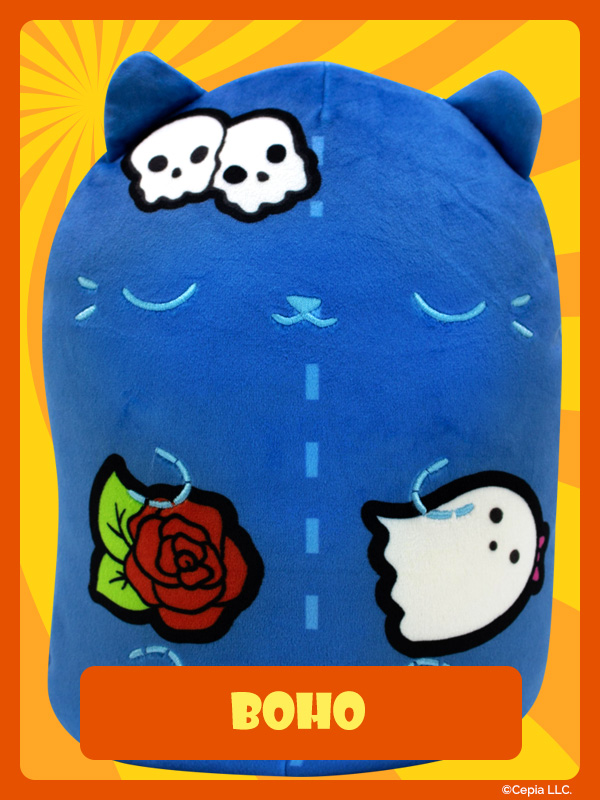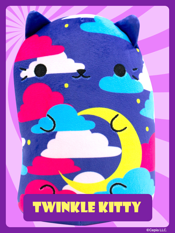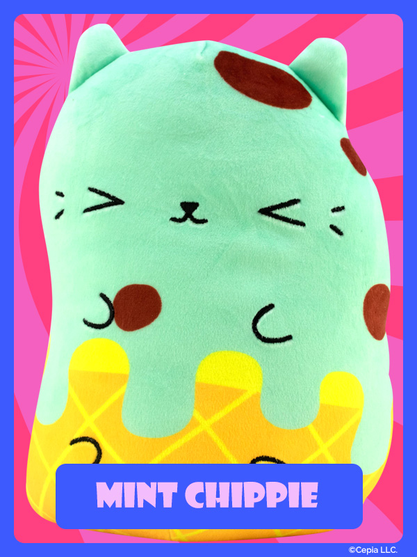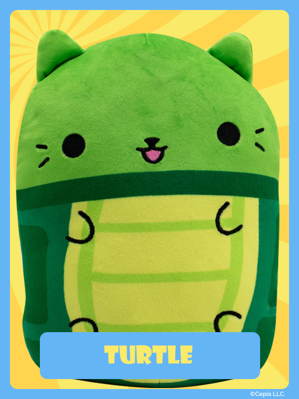 New Cats Vs Pickles “Jumbos” are super-soft, colorful, bean-filled plushies and are winners of the Toy Insider "12 Under $20" award! They’re about 8.6 inches tall, 7 inches wide, and have a weighted bottom. They’re so soft and feel so great to hold, you’ll never want to put them down!
